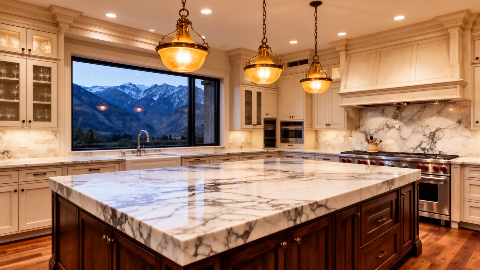 Custom kitchen renovations with imported stone, premium cabinetry, professional-grade appliances, and mountain-inspired design — built to perform and last.
